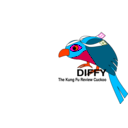 diffy الطيور الكونغ فو شعار طائر جناح ريش رسم الوان ازرق برتقالى اصفر حديقة غابة عش شجرة نبات زرع قفص زينة منزل