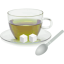 Glass Cup With Glass Saucer Spoon And Sugar Cubes Clipart
