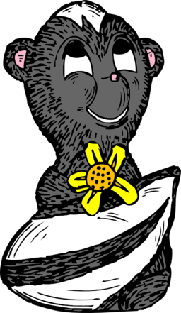 The title of this royalty free vector image is Skunk With A Flower Clipart, which can be described by skunk image and flower image. The image can be downloaded as SVG vector format by clicking the SVG button, or as PNG raster format by clicking the Download button. Choose the desired PNG size 64px, 128px, 256px, 512px, or Custom Size by clicking the Size button. The Custom Size option enables you to specify the desired width and height of the image. You can remix or edit the image to add your own touch by clicking the Edit button. Finally, the PNG image is available at several colon variations by clicking the More button.